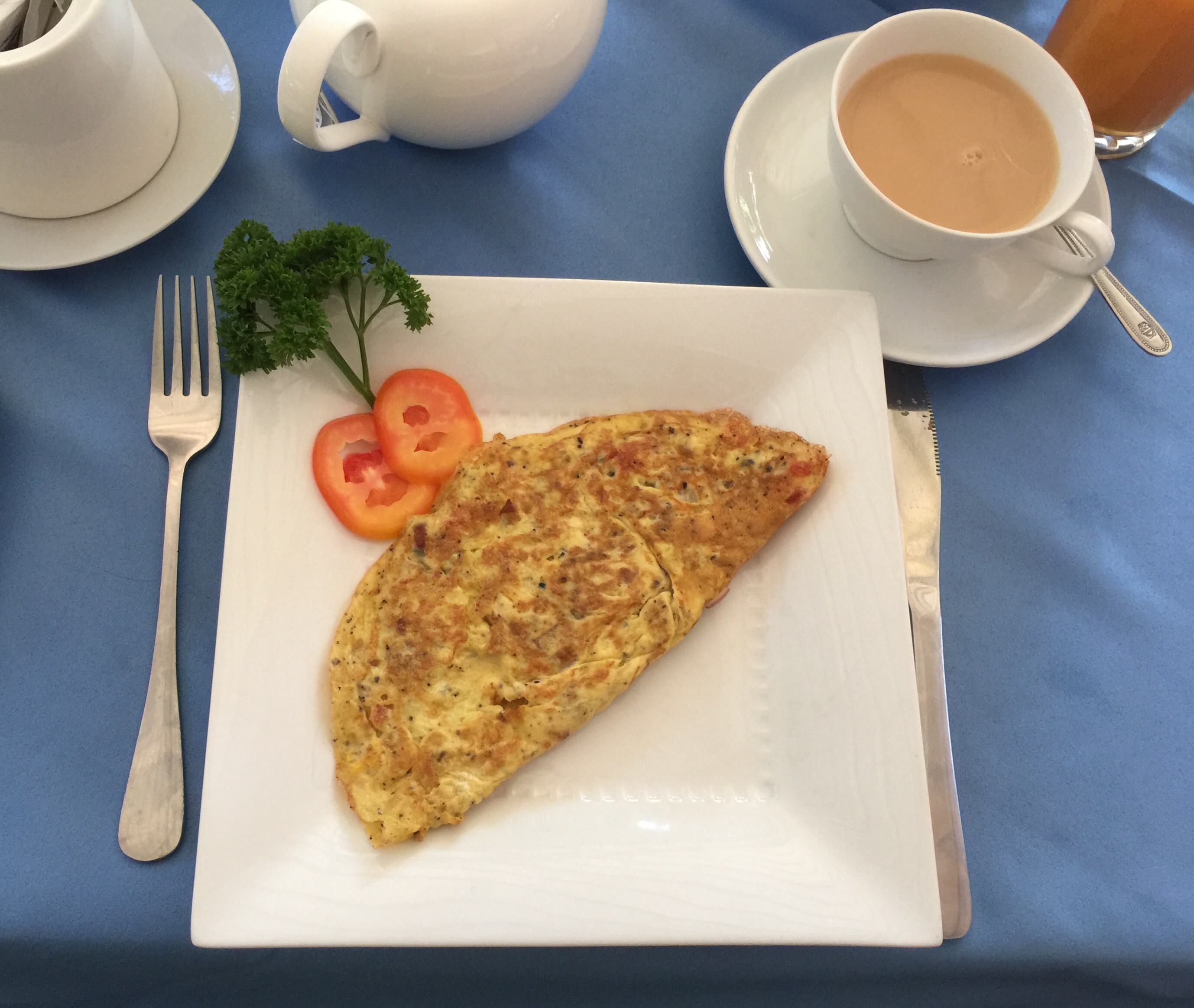 Strong tea, delicious fruit and freshly made omelettes. Served by polite waitstaff who could not do enough to please you.