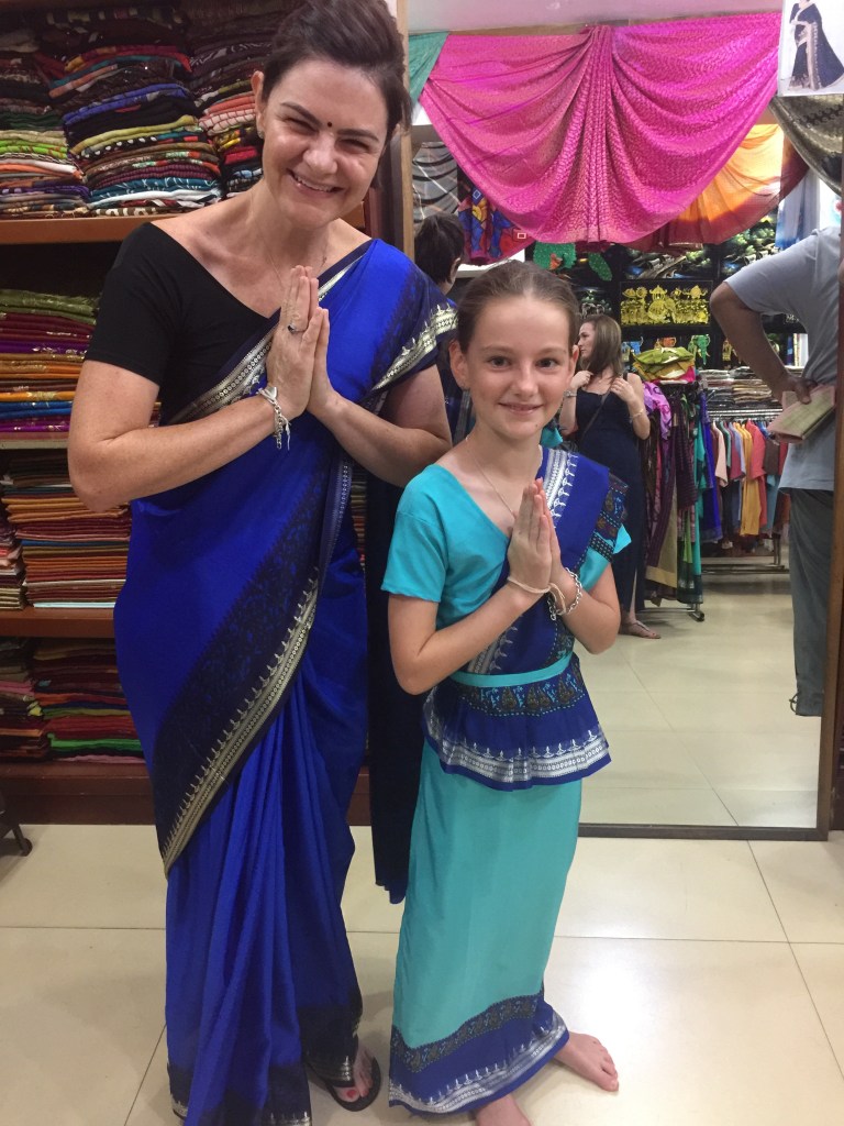 We had a few grumpy heads this morning, the busy days had caught up with us and we were missing a few comforts from home! For me coffee and a decent shower! After quick shop at a silk boutique, the girls were feeling great. Pearl bought herself a sari and enjoyed the adoring attention from the locals.