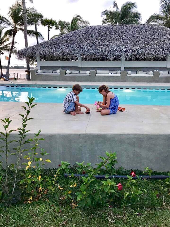 Our days turned in to a nice routine. Derek would take the first boat at 9.30 and kite till lunch time and I would stay at the resort with the kids. It was so peaceful when everyone was out kiting. The kids and I would do school work and take dips in the pool in between. Derek would come back on the lunch boat and I would head out for my lesson in the afternoon. The kids and Derek would either come to the beach or stay behind.