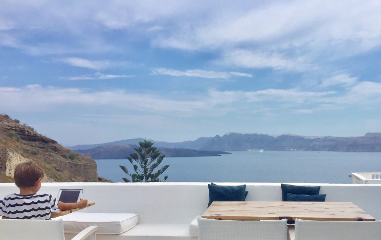 I would love to say we were energetic and explored the volcano, hiked the coastline, went on sunset cruises but I can’t. We were all so content going slow in the morning, finding a new beach everyday, swimming in the crystal clear water, eating 2€ gyros for lunch, hanging by the pool in the afternoon and staring in awe at the spectacular view.