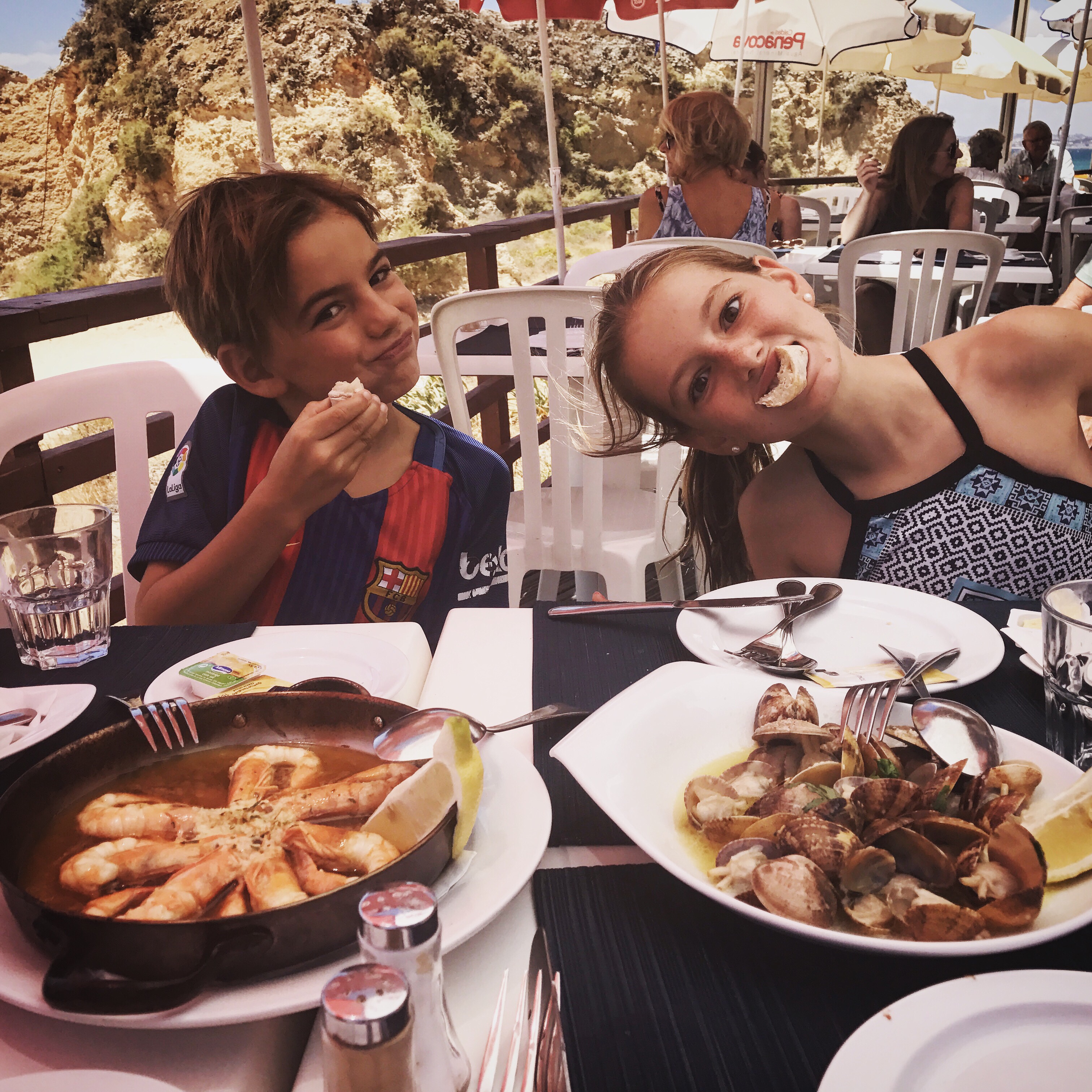 We ate out only the once at Atlântida, a recommendation from our new friends with beautiful fresh seafood. Atlântida set right on the beach meant that swims between ordering and eating was a viable option. We ordered fresh clams in garlic and butter, prawns in coriander and lemons, local cheese and of course bread. It was simple and delicious and we had to fight the kids not to eat more than us.